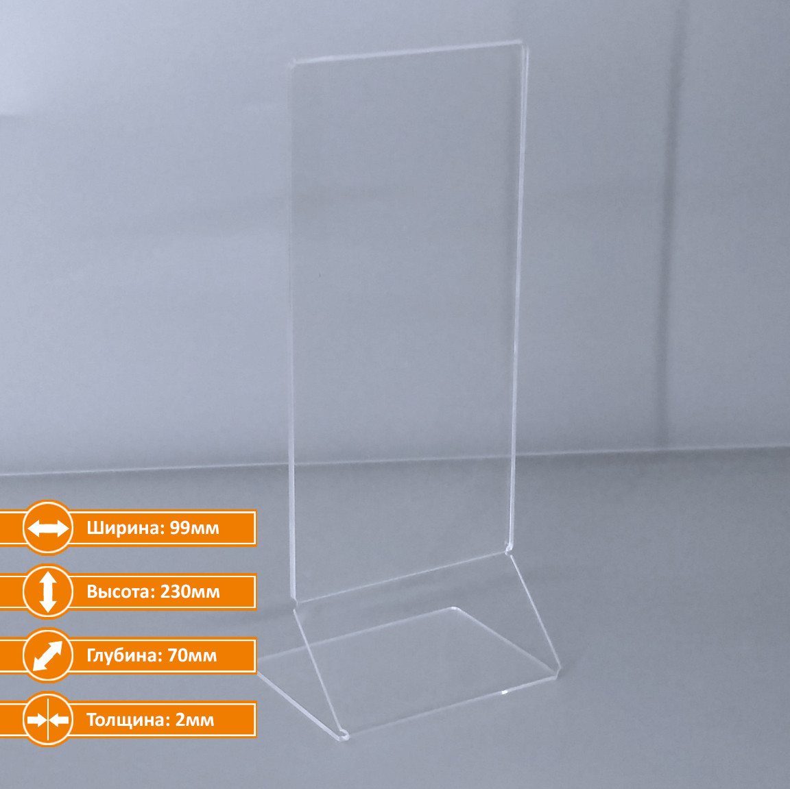 Менюхолдер (тейблтент) під єврофлаєр (99х210мм) – це практичний та зручний спосіб представлення меню, акційних пропозицій, реклами та іншої інформації.